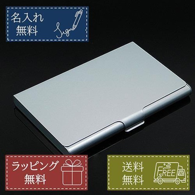 名入れ無料 ラッピング無料 フリーメッセージカード無料 送料無料 990円 ※複数ご購入をご希望の方はお気軽にお問い合わせください 洗練されたデザインと実用性を兼ね備えた名入れアルミ名刺入れ。軽量で丈夫なアルミニウム素材を使用し、大切な名刺をしっかりと保護します。スタイリッシュなデザインは、ビジネスシーンやフォーマルな場面でも活躍します。 ◆ダイヤモンドチップ名入れ あなたの名前やメッセージが、細やかで高級感あふれる仕上がりになります。この特別な名入れ加工により、世界に一つだけの名刺入れをお手元に届けます。 ■仕様 材質:アルミニウム サイズ:約9.3cmx約6cmx約1cm ★名入れご希望の方 詳細は掲載画像をご覧ください。 ※太字ご希望の場合は有料名入れ(+330円)になりますので、 当店商品(◆名入れ有料オプション◆330円)を同時ご購入下さい。 ★購入後、備考欄にて下記の情報をお知らせ下さい。 ・名入れ(必要/不要 必要→書体、内容) ・メッセージカード(必要/不要 必要→ さくらor白詰草→内容) ・ラッピング(必要/不要)