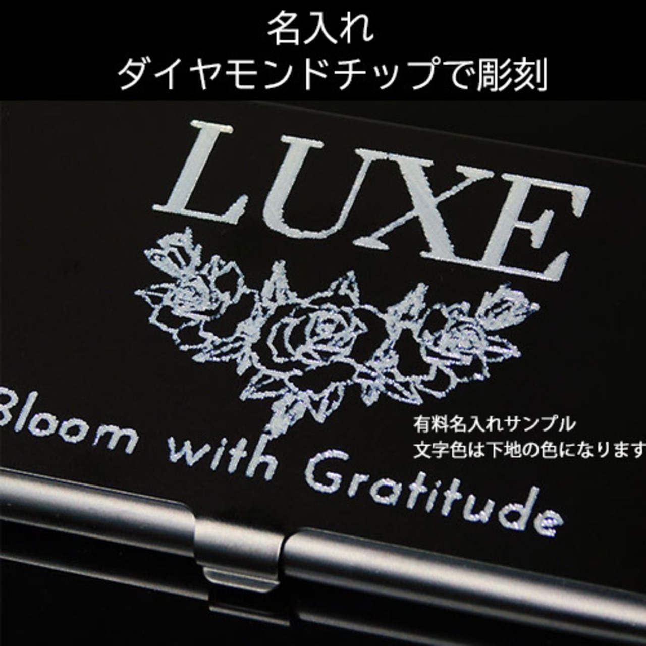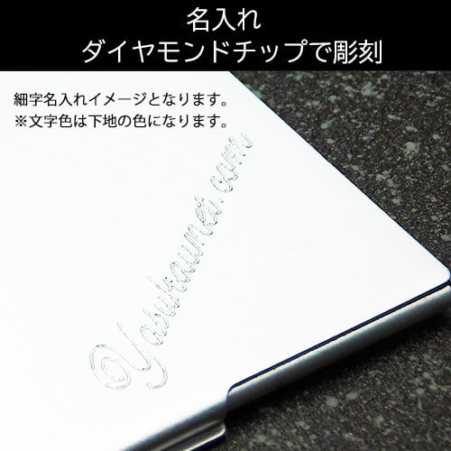 あなたの名前やメッセージが、細やかで高級感あふれる仕上がりになります。この特別な名入れ加工により、世界に一つだけの名刺入れをお手元に届けます。