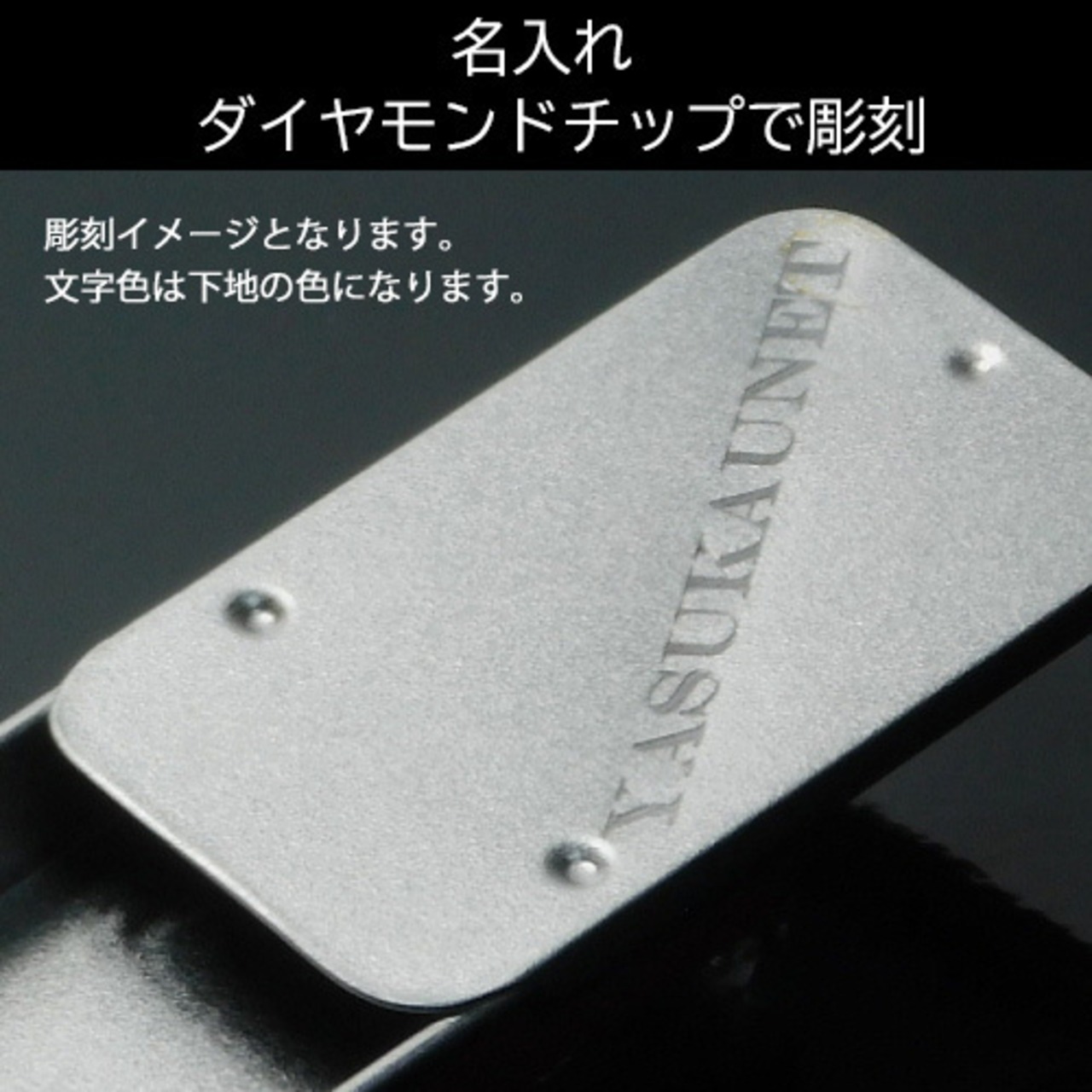 ダイヤモンドチップ名入れ彫刻でお名前やメッセージに輝く高級感が生まれますので一味違うプチギフトにもシンプルで使いやすいのでおすすめです。