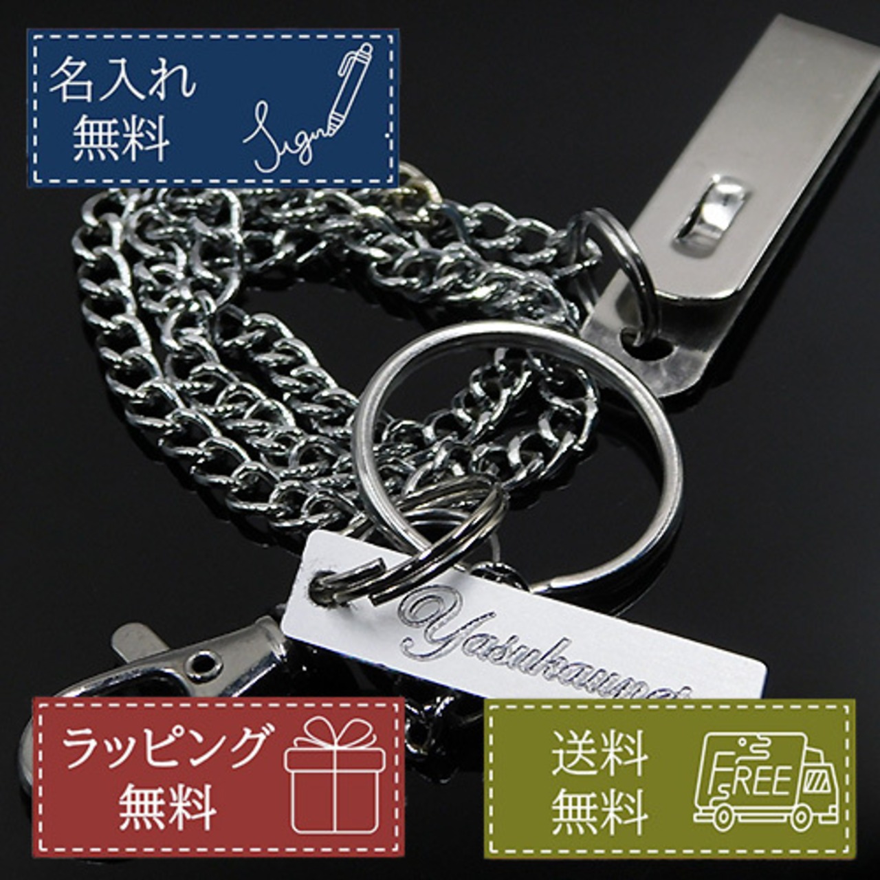 スタイルと実用性を兼ね備えた、メタル製ウォレットチェーンです。全長50cmのこのチェーンはベルトフックでしっかりと装着でき、ナスカン付きでウォレットをしっかりと守ります。名入れが可能で、特別な一品として、自分用にもギフトにも最適です。日常のアクセサリーに、スタイルと安心感をプラスします。