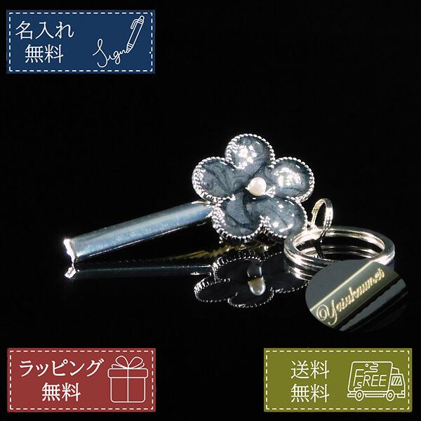 名入れ無料 バッグチャーム キークリップ フラワー ブラック ゴールド キーホルダー 女性 名前入り 誕生日 プレゼント ギフト ノベルティ おしゃれ 鞄 かばん